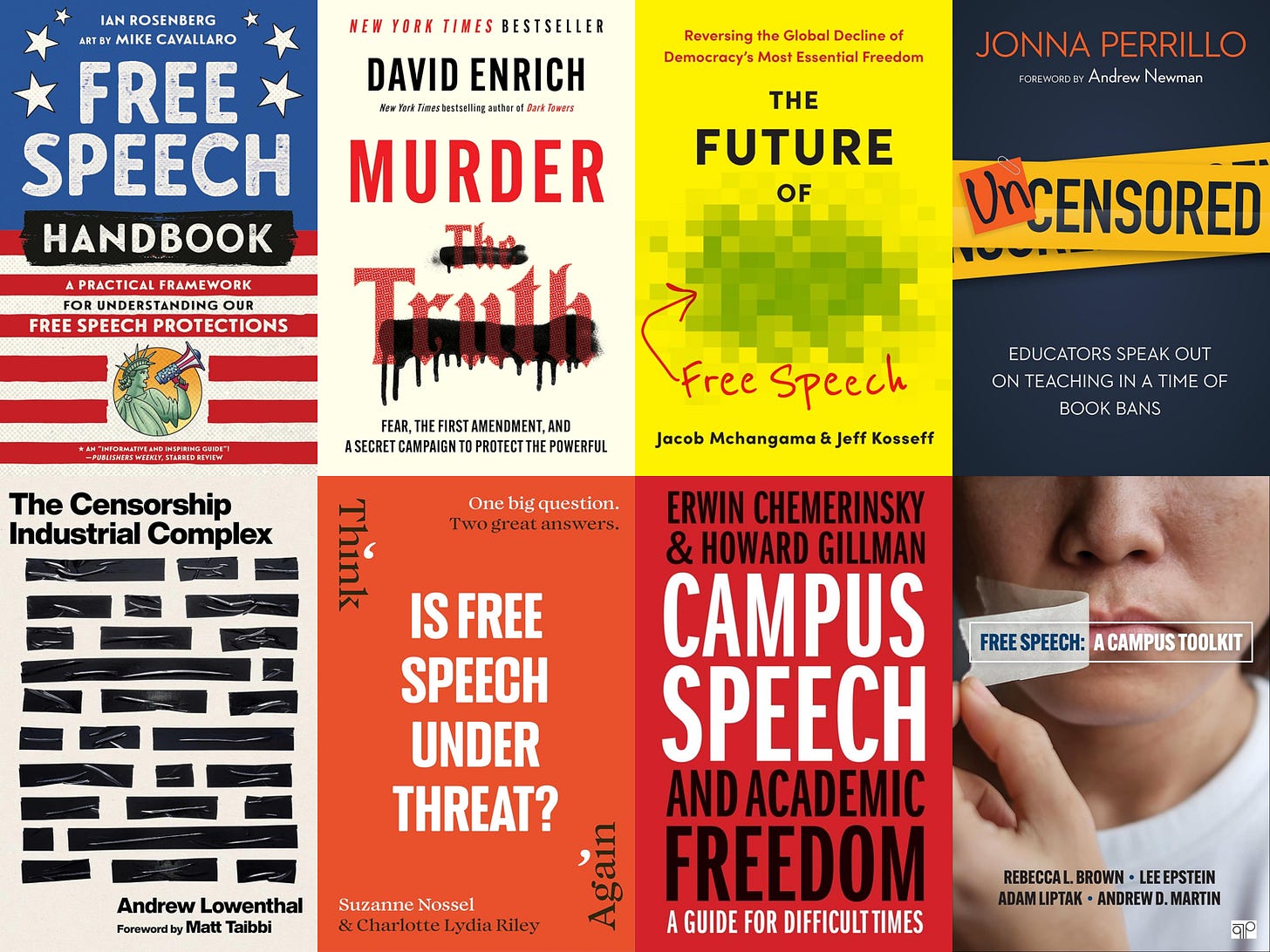 ‘Tis the book season! Below is a list of 24 forthcoming or new books related to free expression. There should be something there to please or offend everyone . . . at least I hope so! Links to the respective books are set out after each of the three cover photo sets below. Following that is a list of some reviews of a few of the books mentioned.