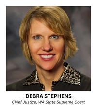 Debra Stephens joined the Washington State Supreme Court in January 2008 and began serving a second time as chief justice in January 2025. She was previously a judge for Division Three of the Court of Appeals and practiced law and taught as an adjunct professor at Gonzaga University School of Law. Her appellate career included more than 125 appearances in the Washington State Supreme Court, in addition to appearances in other state and federal courts and as counsel of record in the United States Supreme Court.